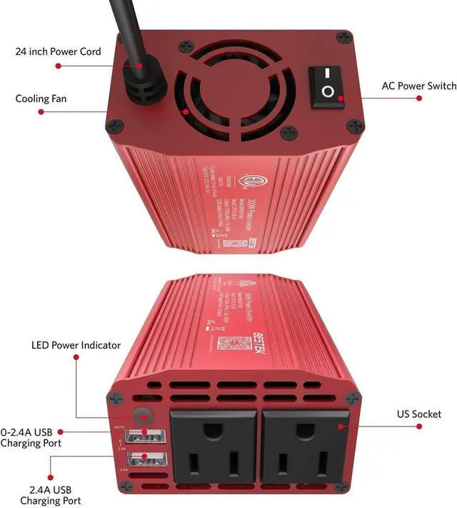 300W Power Inverter DC 12V to 110V AC Car Inverter with 4.2A Dual USB Car Adapter