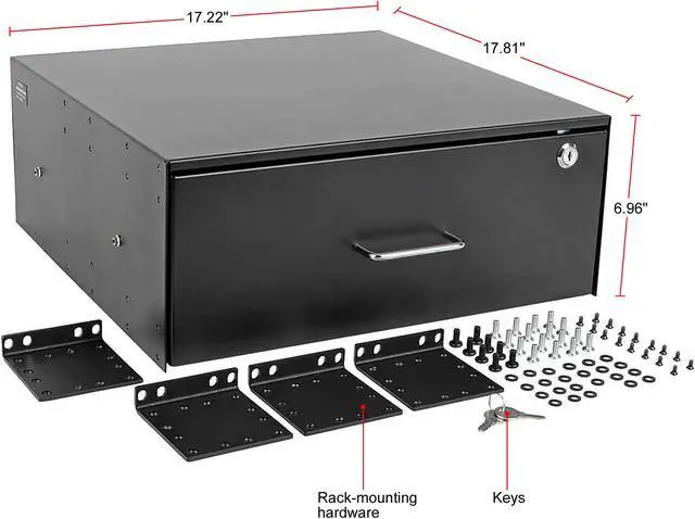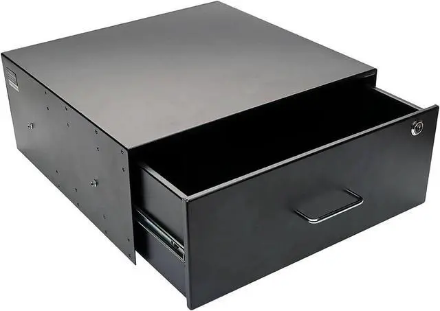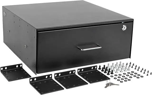 The SRDRAWER4U SmartRack 4U Locking Rack-Mount Storage Drawer is a convenient way to keep tools ,cables ,notes and essential accessories for your rack-mounted equipment at your fingertips. Constructed using cold-rolled steel with a durable black powder-coated finish ,this rack-mount drawer has a maximum load capacity of 50 pounds. Recommended for quick storage in your data center ,wiring closet ,back office or anywhere else you keep rack equipment ,the SRDRAWER4U mounts to your EIA-standard 19-inch 2-post rack using the included hardware. It locks securely with the included keys to help prevent damage ,tampering or theft. When not in use ,the 4U drawer slides smoothly into the rack ,out of the way until the next time you need a quick screwdriver or patch cable. |