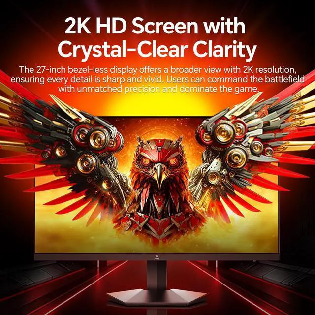 The 27-inch bezel-less display offers a broader view with 2K resolution, ensuring every detail is sharp and vivid. Users can command the battlefield with unmatched precision and dominate the game.