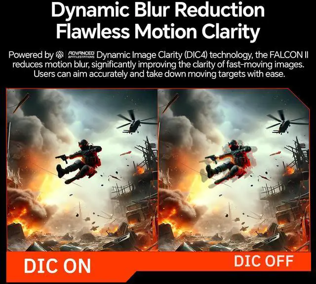 Powered by Dynamic Image Clarity (DIC) technology, GQ271NE reduces motion blur, significantly improving the clarity of fast-moving images. Users can aim accurately and take down moving targets with ease.