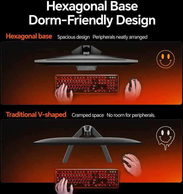 Maximize your desk space with the innovative hexagonal stand. Its small footprint ensures ample room for workspace while maintaining stability.