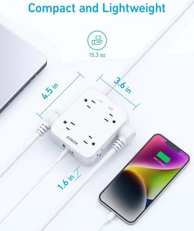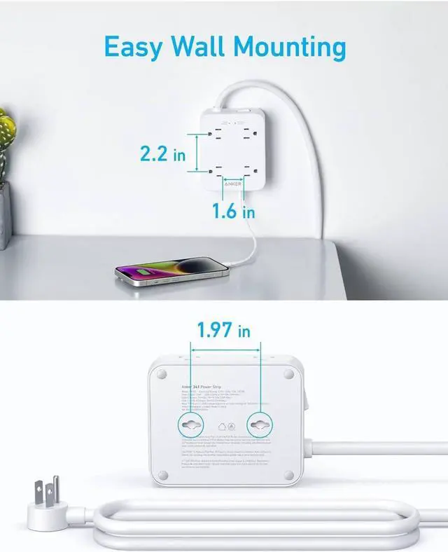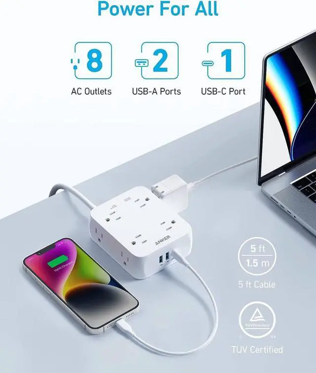 Anker Power Strip with USB Ports,5Ft,Surge Protector(2000J),8 Widely Outlet Extender with 2 USB A Ports and 1 USB C Port,Works with iPhone 15/15 Plus/15 Pro/15 Pro Max,for Home, Office, TUV Listed