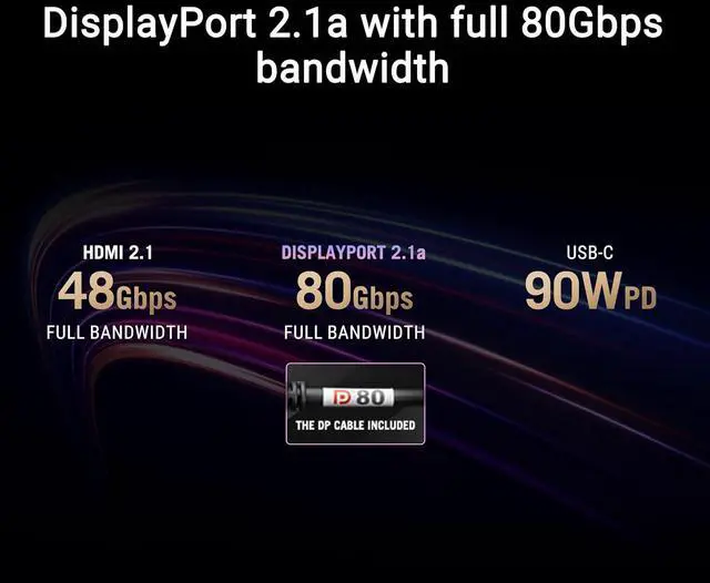 – display port 2.1a uhbr 20 means the full 80gbps bandwidth and no display stream compression