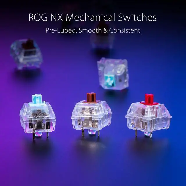 Compact design: 65% keyboard in a 60% frame masterfully incorporates arrow and navigation keysROG NX mechanical switches: Lubricated stem and housing for smoother clicks and to eliminate bouncing noise respectively ,fast actuation and ROG-tuned force curves for great ,consistent keystrokesBetter typing experience: Specially designed ROG switch stabilizer to ensure smooth keystrokes and stability for longer keys ,plus ROG PBT doubleshot keycaps and built-in sound-dampening foam for improved acousticsIntuitive control: Interactive touch panel for easy adjustments and customizationDual USB-C®: Flexible port placement for a neater setup ,and enable users to quick-toggle switch between two PCsErgonomic design: Three keyboard tilt angles for comfort and control Portable protection: Innovative keyboard cover case provides on-the-go protection |