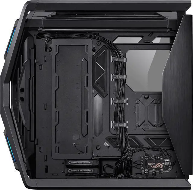 ASUS ROG Hyperion GR701 EATX full-tower computer case with semi-open structure, tool-free side panels, supports up to 2 x 420mm radiators, built-in graphics card holder,2x front panel Type-C