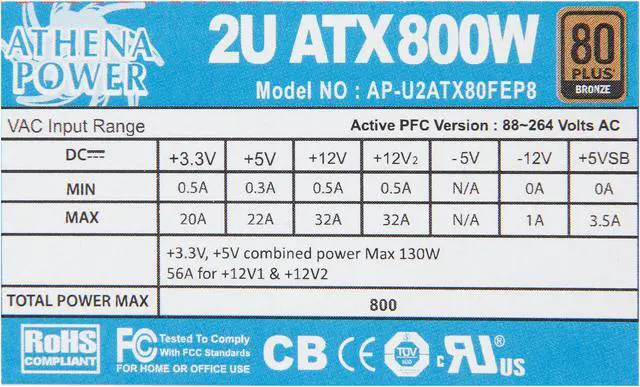 19 reviews for Athena Power AP-U2ATX80FEP8 2U IPC Server Power Supply – 80PLUS Bronze