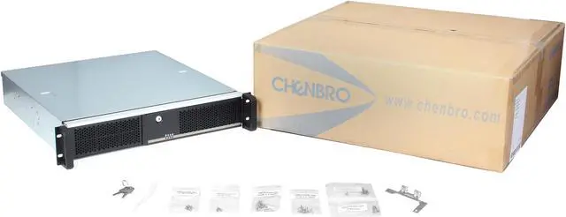 1 x 2U chassis base1 x 80mm(T32) ,3P3C Fan1 x For display and control switch ,800mm Cable1 x AC-IN2 x USB 2.0 ,750mm1 x For PS2 PSU Bracket 1 x 3.5" HDD holder1 x 2.5" HDD holder1 x 5.25" + 1 x 3.5" drive bay HDD Cage1 x Single carton with Chenbro logo1 x 2-door type front door with key lock |