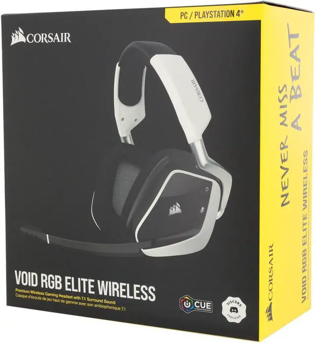 Corsair VOID RGB Elite Wireless Premium Gaming Headset with 7.1 Surround Sound – Discord Certified – Works with PC, PS5 and PS4 – White