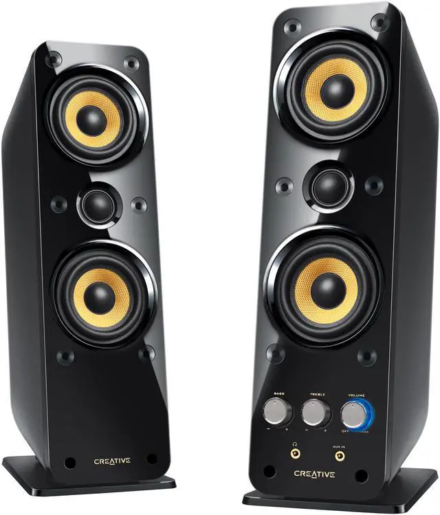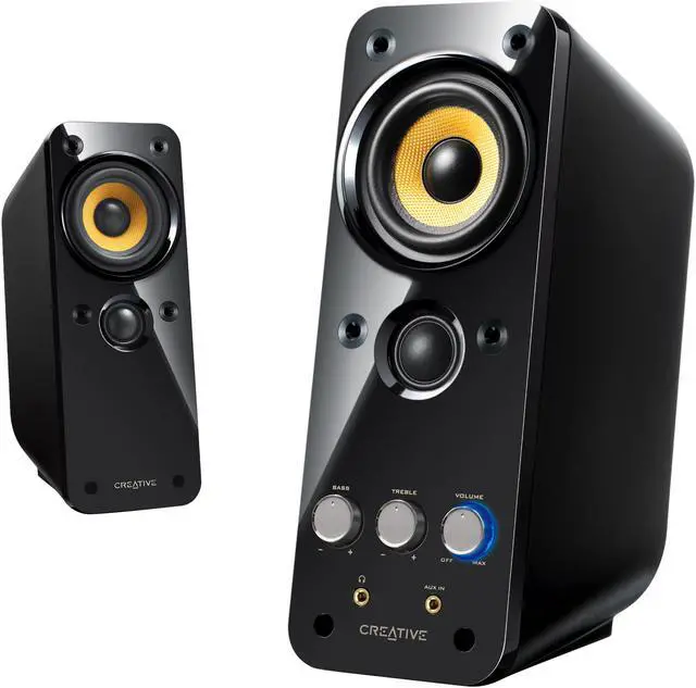 The build quality of my original pair had an issue with the audio inputs no connecting after awhile without adjusting the cord. Overall Review: Given the size of woofers you can’t expect too much bass. And Creative did replace my speakers during the warranty with no issues and the turn around was very quick. The replacement speakers I got don’t seem to have any build quality issues at all.