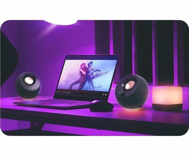 Creative Pebble Pro Minimalist 2.0 USB-C Speakers with Bluetooth, RGB Lighting – Black
