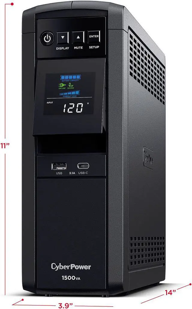 CyberPower CP1500PFCLCD PFC Sinewave UPS Systems – 1500VA/1000W, 120 VAC, NEMA 5-15P, Mini-Tower, Sine Wave, 12 Outlets, LCD, PowerPanel