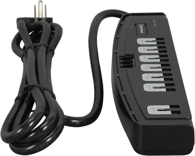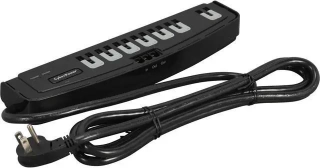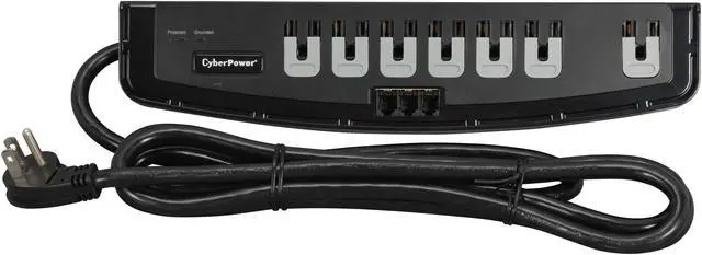 Transformer-Spaced OutletsWidely spaced outlets accommodate large transformer-based plugs without compromising the utility of other outlets.Built-In Automatic ShutdownIn the event of an overload that exceeds the unit's ability to suppress the signal ,the surge protectors' 15A circuit breaker will automatically switch off to protect all connected electronics.MOV (Metal Oxide Varistor)MOV technology allows normal current to pass through the device ,while diverting any surge/spikes through the ground circuit. This safely protects all connected electronics along with the surge suppressor itself.Data Line ProtectionRJ-11 ports (1 in ,2 out) provide surge protection to insure telecommunications devices such as phones and DSL modems work flawlessly when power events occur.EMI/RFI FiltersFilters against electromagnetic interference and radio frequency interference ensuring clean power for connected equipment.Keyhole SlotsMounting slots enable the surge protector to be mounted on a wall ,under a desk ,and in other configurations to optimize space and keep your power cords out of the way and organized.Sturdy CaseConstructed of impact-resistant material for maximum durability.ISO & Safety CertificationsAll CyberPower's manufacturing facilities are ISO-9001 Quality Tested. CyberPower's products are also UL Listed and CSA Certified. |
