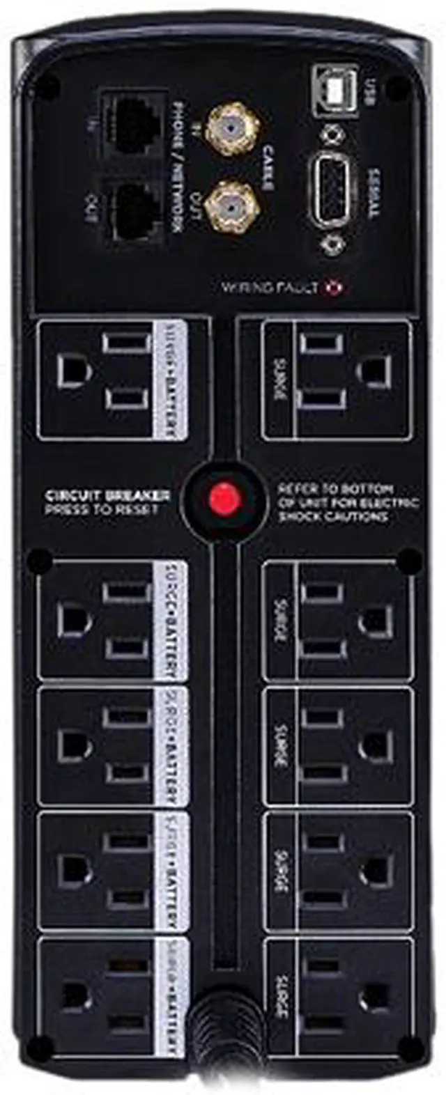 1350 VA ,810 Watts Simulated Sine Wave UPSLine-Interactive TopologyAVR & GreenPower UPSMultifunction LCD DisplayMini-Tower Form FactorRJ11 ,RJ45 and Coax RG6 Protection10 Outlets ,USB and Serial PortsEMI ,RFI FiltersPowerPanel Personal Edition |