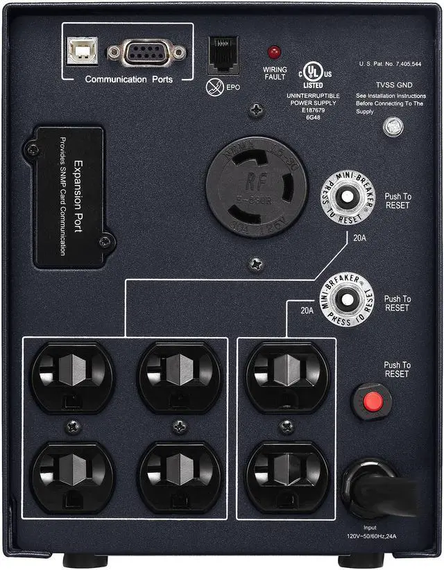 3000VA ,2700W Pure Sine Wave UPSLine-Interactive TopologyFull AVR Buck/Boost & GreenPower UPSMini-Tower Form FactorMultifunction LCD PanelSNMP/HTTP Remote Management Option7 Outlets ,USB ,Serial ,and EPO PortsEMI/RFI FiltersPowerPanel Business Edition |