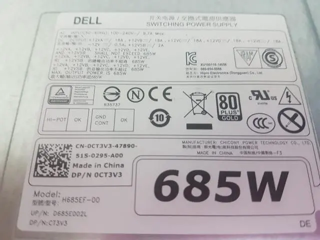 DELL 685W Power Supply for Precision T5810 Workstation PN: W4DTF K8CDY CYP9P KTMT8 VDY4N