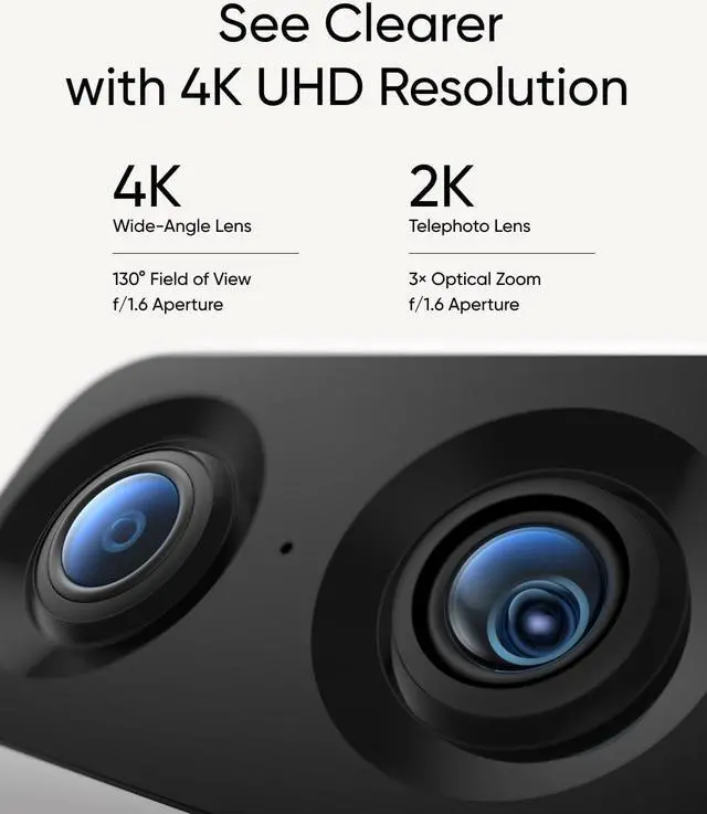 Camera | Dual Cameras 4K Wide-Angle and 2K Telephoto | 2K Wide-Angle | 2K Wide-Angle |