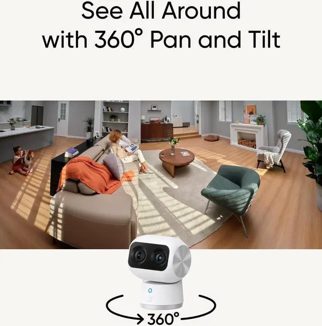 eufy Security Indoor Cam S350, Dual Cameras, 4K UHD Resolution Security Camera with 8× Zoom and 360° PTZ, Human/Pet AI, Ideal for Baby Monitor/Pet