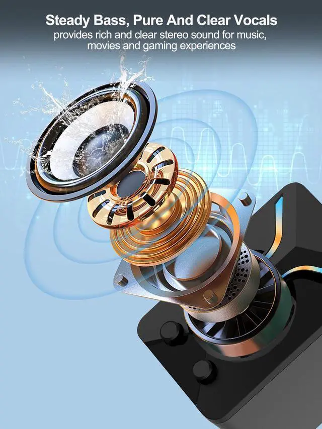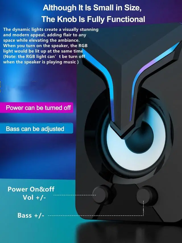 This High Performan Computer Speaker shipped by Newegg directly ,Shipped from USA.Impressive Sound Quality: The 11W stereo mini subwoofer delivers rich audio with powerful bass ,crystal-clear vocals ,and no distortion ,even at high volumes. Enjoy your favorite music ,movies ,and games with lifelike sound and immersive audio effects.Charming and Stylish Lighting: The dynamic lights create a visually stunning and modern appeal ,adding flair to any space while elevating the ambiance. When you turn on the speaker ,the RGB light would be lit up at the same time(Note: the RGB light can’t be turn off when the speaker is playing music )Customizable Bass Control: Featuring an independent bass knob ,our speaker allows you to adjust the bass to suit different genres of music and video soundtracks. Despite its compact size ,the Bailink speaker offers all the essential features needed to upgrade your audio experience.Extra-Long Cables for Versatile Placement: The speaker’s 112CM connecting cable and 155CM USB power cable offer flexible placement options. You can easily position the speakers on either side of your computer while maintaining a neat ,clutter-free workspace.Hassle-Free Setup: Simply plug the USB cable into a power source and connect your device via the AUX input. The compact design is perfect for desktops ,while the USB power supply eliminates the need for an additional power adapter. |