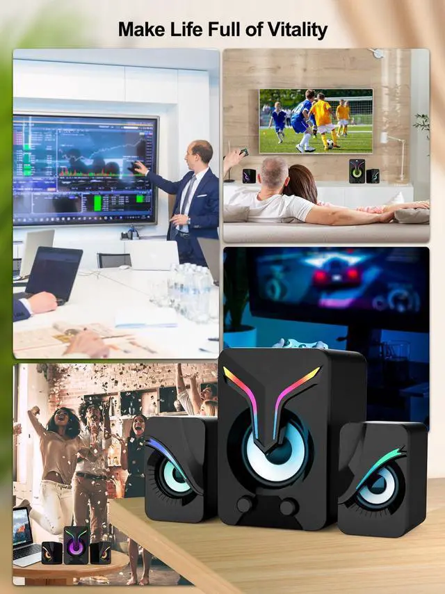 High Performan Computer Speaker, Mini PC Speakers with Subwoofer, 2.1 Desktop Speaker with RGB Lights, USB Powered, Stereo Sound, Gaming Speaker with