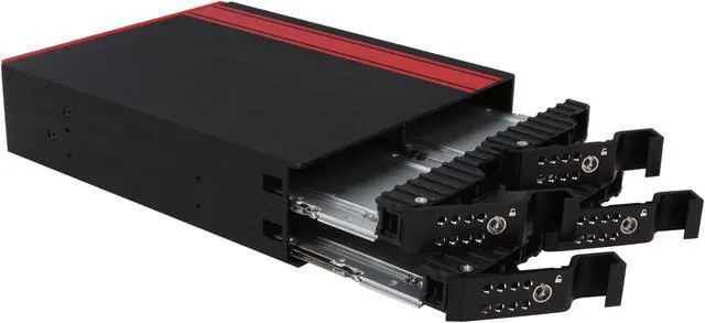 Pros: All machined aluminum construction, dual fans, very nice looking. Full speed 6 GB/sec transfer rates perfect for RAID SSDs. Cons: Fans are quiet but not silent. Sliding the drive trays back into the unit can sometimes be tricky. It is easy to accidentally miss engaging the rails on one side. The key is to not “force” a drive in if it puts up resistance as it is likely not on both rails. Overall Review: These are great cages. I have four of them for a large scale SSD raid.