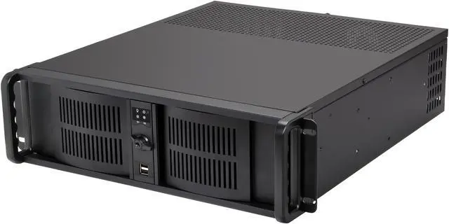 iStarUSA D-300-FS Black Aluminum / Steel 3U Rackmount Compact Stylish Front-mounted PSU Chassis 2 External 5.25″ Drive Bays