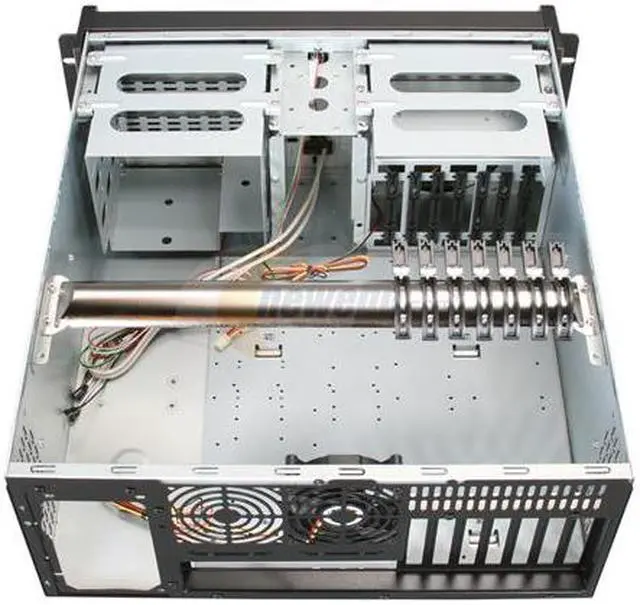 Pros: Nice size box, able to install 6 5.25″ removable HDD trays. Make for a nice rackmounted NAS box. Seems very well contrstructed working in this box was painless. After adding power supply and hard drives this thing is very heavy over 50 lbs. See other thoughts Cons: None really, if there is one the fans don’t have the monitor wire that I like so I can connect them to the motherboard and get data back. No big deal, if you need that then just by some and replace the ones that came with it. Overall Review: This box is hugh (hense 4U) it has an internal bar running from the left side of the case to the right side to give the case strength. You can take it out if you don’t need it, or it gets in your way (No issues for me). Also if you are going to rack mount this you may want to get yourself some rack rails, I can’t see mounting this thing just by the side rails on the case itself, although it seems strong enough where you could probably do that.