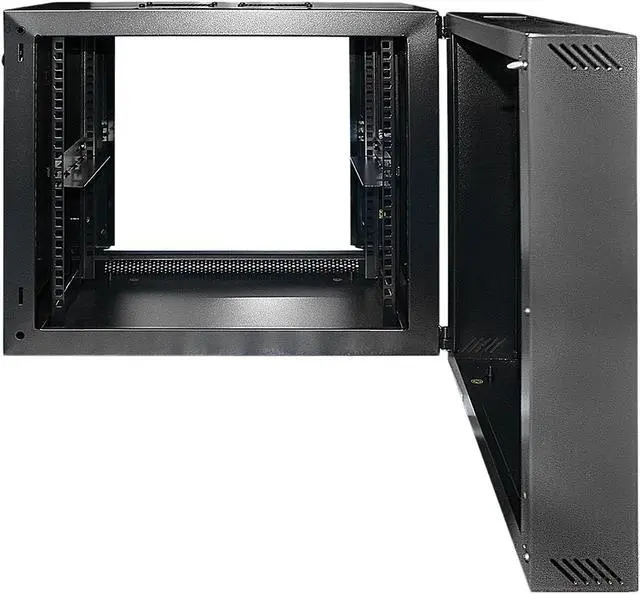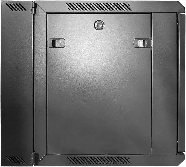 A 9U IT cabinet designed for securing and organizing standard 19″ rack-mount equipment such as network switches and patch panels. The wall-mountable design is ideal for situations with limited space and where you need the network equipment to be out of the way.
