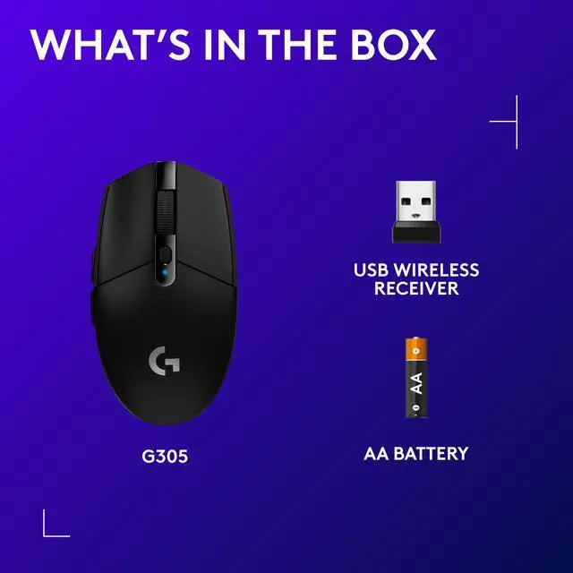 Logitech G305 LIGHTSPEED Wireless Gaming Mouse, Hero 12K Sensor, 12,000 DPI, Lightweight, 6 Programmable Buttons, 250h Battery Life, On-Board Memory,