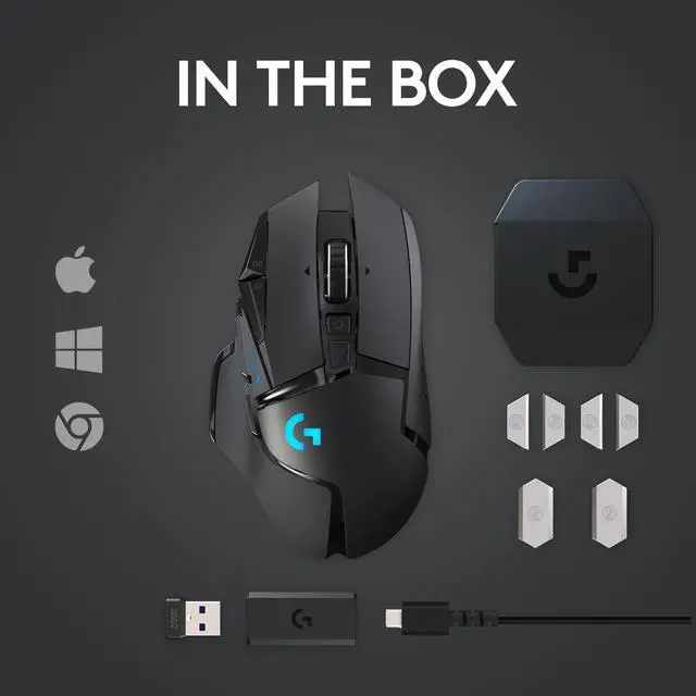 LIGHTSPEED WirelessG502 is an icon ,topping the charts through every generation ,and the mouse of choice for serious gamers. Now ,G502 joins the ranks of the world's most advanced wireless gaming mice with the release of G502 LIGHTSPEED. LIGHTSPEED is ultra-fast and reliable with performance trusted in competition by esports pros. G502 LIGHTSPEED also features the next-generation HERO 25K sensor and is POWERPLAY compatible. With this complete advanced technology remastering ,G502 LIGHTSPEED still retains the same beloved shape – and achieves a 7-gram weight reduction.The Icon ReinventedG502 LIGHTSPEED was designed to be the ultimate G502 gaming mouse ever made. It keeps the exact same ID and feature set of the original ,but is completely re-engineered to incorporate our most recent innovations. The internal structure features the same thin wall design and advanced endoskeleton as the PRO Wireless mouse for a 7-gram weight reduction. And the same industry-leading wireless technologies: LIGHTSPEED ,HERO 25K and POWERPLAY. HERO 25K SensorNext-gen HERO 25K gaming sensor is capable of 400+ IPS tracking speed across the entire 25,600 DPI range and up to 10x the power efficiency compared to previous generations. The result is our highest performance and most responsive gaming sensor to date ,which also unlocks weight reduction due to super-efficient battery size and performance ratio.POWERPLAY Wireless ChargingPlay at LIGHTSPEED without limits. Continuously charge your G502 while at rest and at play with the POWERPLAY wireless charging solution. Never worry about battery life again. It just stays charged.LIGHTSYNC RGB LightingFull-spectrum ,fully-customizable LIGHTSYNC RGB intelligently reacts with your gameplay ,audio ,or screen color. Set all your Logitech G RGB gear to synchronize together. Set lighting across ~16.8M colors to match your room and rig. Create your own personal RGB animations. The choice is yours. Your RGB ,and a lot more ,is und |