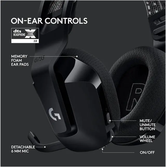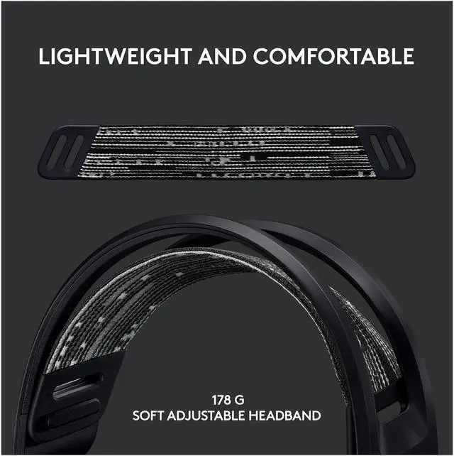 Long-Lasting ComfortLightweight (278g) with unique reversible and adjustable suspension headband and dual-layer memory foam earpads.Advanced AudioPro-G drivers and DTS Headphone: X2.0 surround create an immersive sound experience.Vibrant ColorsExpress yourself with a diverse choice of bold colors. Accessories available separately.LIGHTSPEED WirelessPro-grade wireless with up to 29 hours of battery life and 20m range.Front-Facing LIGHTSYNC RGB LightingCustomize dual-zone RGB lighting and effects from approx. 16.8 million colors.Blue VO!CE Mic TechnologyTune the detachable mic for ultra-clear voice comms with advanced noise reduction ,compression ,de-esser and more. |