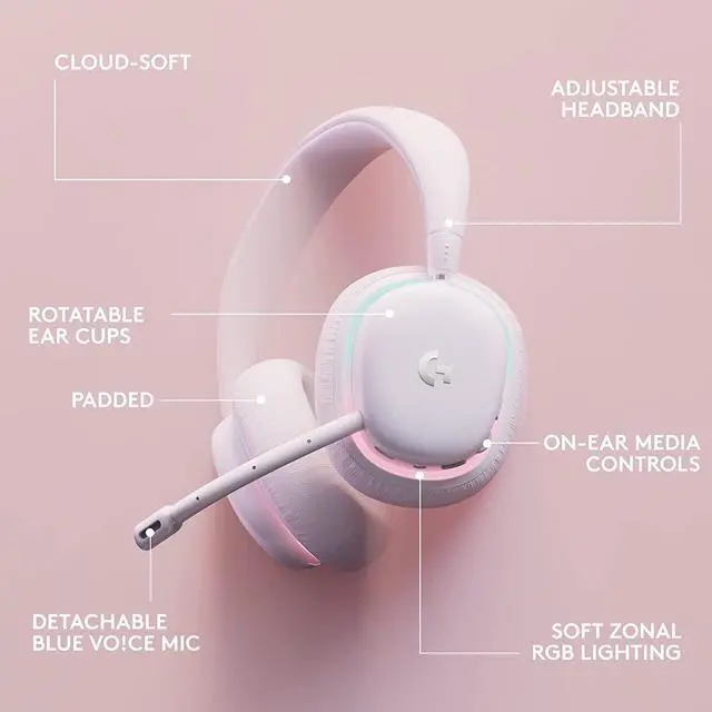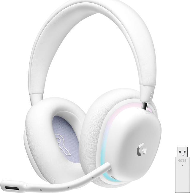 Logitech G735 Wireless Gaming Headset, Customizable LIGHTSYNC RGB Lighting, Lightspeed, Bluetooth, 3.5 MM Aux Compatible with PC, Mobile Devices, Detachable Mic – White Mist
