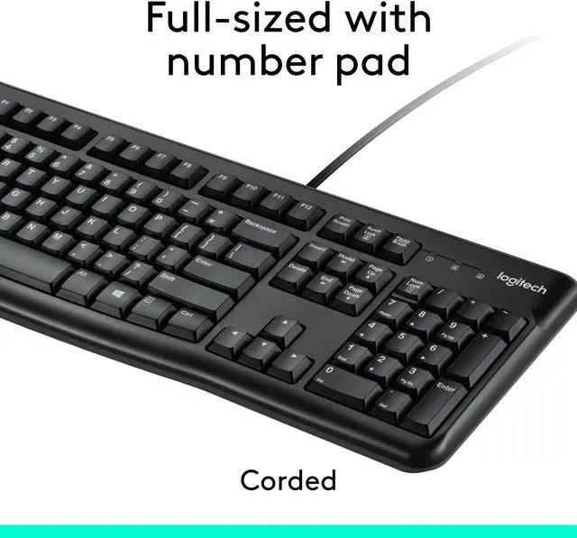 Logitech MK120 Wired Keyboard and Mouse Combo for Windows, Optical Wired Mouse, Full-Size Keyboard, USB Plug-and-Play, Compatible with PC, Laptop – Black