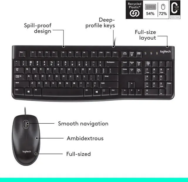 692 reviews for Logitech MK120 Wired Keyboard and Mouse Combo for Windows, Optical Wired Mouse, Full-Size Keyboard, USB Plug-and-Play, Compatible with PC, Laptop –