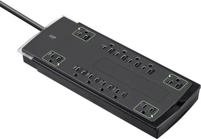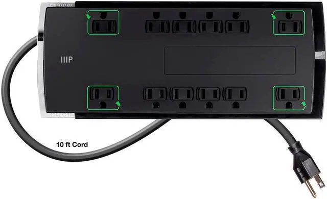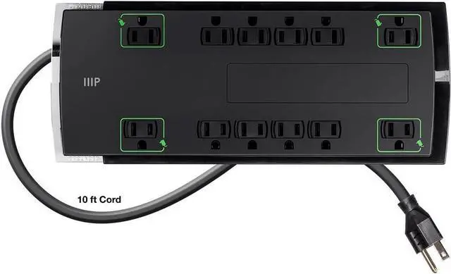 2 reviews for Monoprice 12 Outlet Slim Surge Protector Power Strip – 10 Feet – Black | Heavy Duty Cord | UL Rated, 4,230 Joules With Grounded And Protected Light