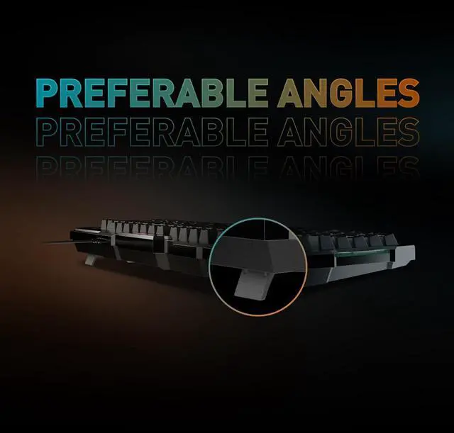 Two keyboard feet support a tilt angle to ensure a more comfortable wrist position during gaming sessions.