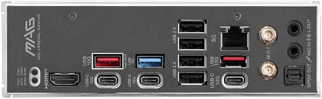 1 x Clear CMOS Button ,1 x Flash BIOS Button ,1 x LAN (RJ45) ,2 x Antenna Bracket ,2 x Audio Jacks ,2 x USB 3.2 Gen 2 Type-A ,3 x USB 3.2 Gen 2 Type-C ,4 x USB 2.0/1.1 |