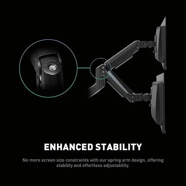 No more screen size constraints with our spring arm design, offering stability and effortless adjustability.