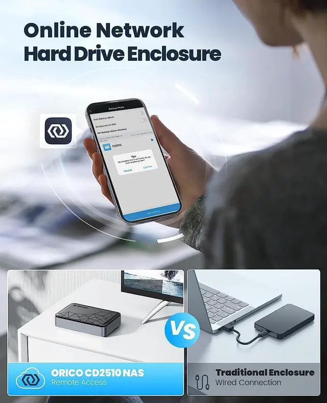 3 reviews for ORICO Networkable Hard Drive Enclosure for 2.5″ SATA HDD/SSD, Family Storage Space and Private Cloud, APP-Connect & VPN Global Access, Smart Backup,