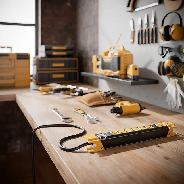 Oviitech 7 Outlets Mountable Heavy Duty Surge Protector Metal Power Strip ,900 Joules,15A Circuit Breaker with 6 Foot Long Extension Cord, Yellow&Black,ETL Listed