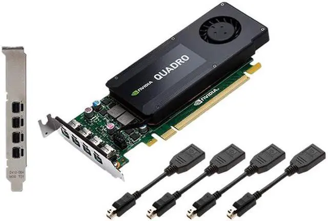 NVIDIA Quadro K1200 professional graphics boardAttached low-profile (SFF) bracketUnattached full-height (ATX) bracketFour mini-DisplayPort to DisplayPort adaptersSoftware installation disc for Windows 10 ,8.1 ,8 ,7 ,and Vista (32- and 64-bit)Printed QuickStart Guide |