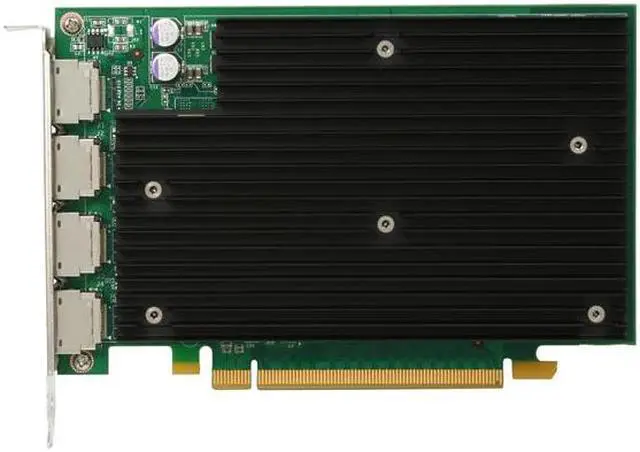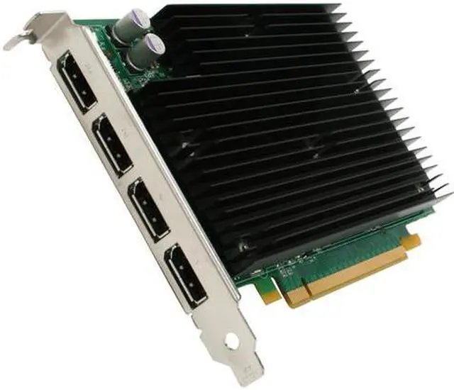 NVIDIA Unified GPU ArchitectureIndustry’s first unified architecture designed to dynamically allocate GPU resources to deliver optimized performance. NVIDIA CUDA Parallel Computing Processor16 CUDA parallel processing cores compatible with all CUDA accelerated applications. NVIDIA CUDA provides a C language environment and tool suite that unleashes new capabilities to solve various visualization challenges. Quad DisplayPort or Quad DVI-D Single LinkFeaturing the user friendly DisplayPort connectors ,Quadro NVS 450 is capable of supporting quad high-resolution displays at 2560 x 1600 resolution. Customers using DisplayPort compatible displays should order PN VCQ450NVS-X16-PB. If DVI displays will be utilized with the NVS 450 order PN VCQ450NVS-X16-DVI-PB which includes four DisplayPort to DVI-D Single Link adapters.Fanless DesignBuilt with a passive heatsink for a quieter desktop environment. NVIDIA PureVideo TechnologyNVIDIA PureVideo technology is the combination of high-definition video processors and software that delivers unprecedented picture clarity ,smooth video ,accurate color ,and precise image scaling for SD and HD video content. Features include high-quality scaling ,spatial temporal de-interlacing ,inverse telecine ,and high quality HF video playback from DVD. NVIDIA nView Advanced Display SoftwareThe nView advanced display software delivers maximum flexibility for single large display or multi-display configurations ,providing unprecedented end-user control of the desktop experience for increased productivity. Energy Star Enabled DesignEnables Energy Star compliance with low maximum and low idle power levels. |