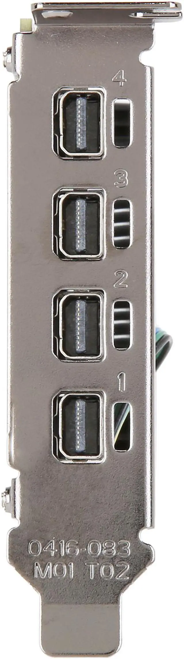 4x MiniDisplayPort supporting up to four 4K displays Cons: No legacy ports on card, therefore:
