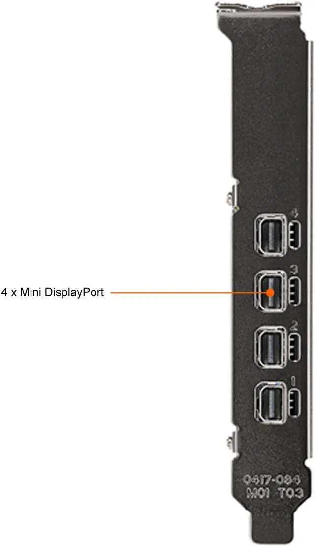 Four Mini DisplayPort 1.4 connectors with latching mechanismDisplayPort with audio NVIDIA RTX Desktop Manager software NVIDIA RTX Experience NVIDIA Mosaic technology2 HDCP 2.2 support |