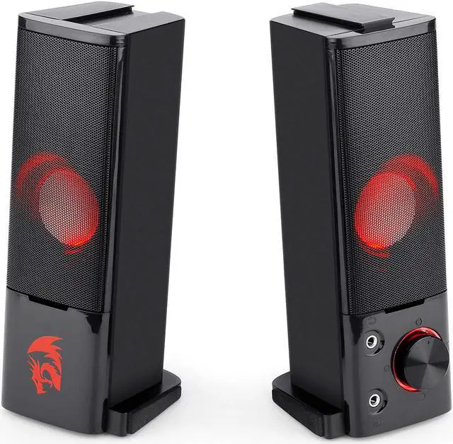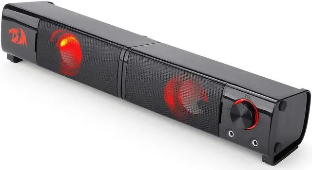 Redragon GS550 Orpheus PC Gaming Speakers, 2.0 Channel Stereo Desktop Computer Sound Bar with Compact Maneuverable Size, Headphone Jack, Quality Bass and Decent Red Backlit, USB Powered w/ 3.5mm Cable
