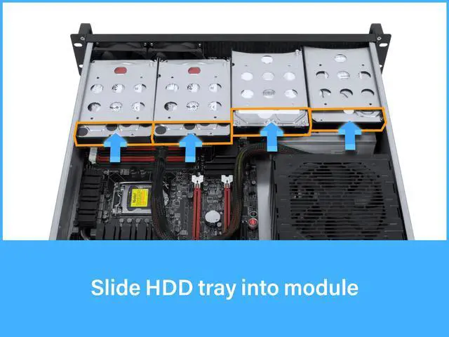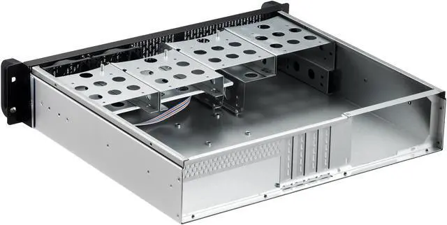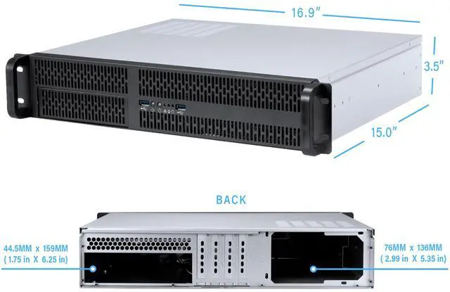 The 2U rackmount server case is designed to allow you to install up to (4) 3.5″ HDDs and (1) 5.25″ device.