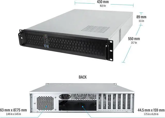 Server case features LED indicators for easy Power, LAN, and HDD status monitoring as well as (2) USB 3.0 ports.