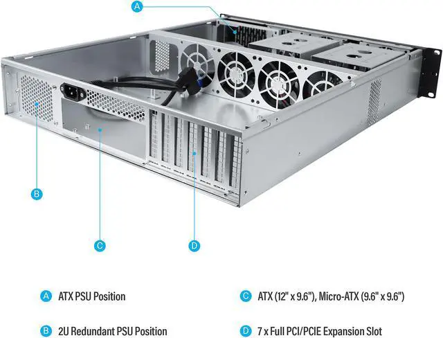 32 reviews for Rosewill 2U Server Chassis Rackmount Case, 4x 3.5″ Bays, 2x 2.5″ Devices, ATX Compatible, Up to 4x 80mm Fans, 2x USB 3.0, Silver/Black – RSV-Z2850U