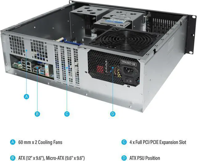 Expand your server case’s functionality by installing up to 4 PCI expansion cards.