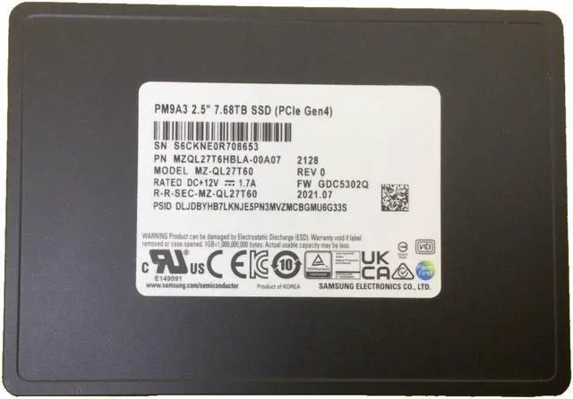 Samsung MZQL27T6HBLA-00A07 PM9A3 7.68Tb U.2 Gen4 x4/dual port x2 NVMe 2.5 Inch Datacenter SSD