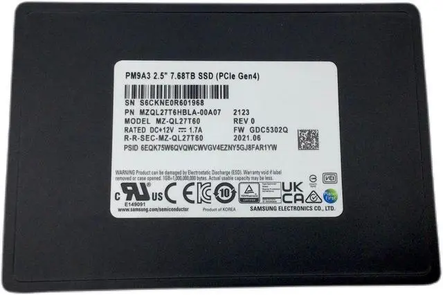 Samsung PM9A3 7.68TB PCIe Gen4 x4 NVMe U.2 Data Center SSD MZ-QL27T60 (MZQL27T6HBLA-00A07)